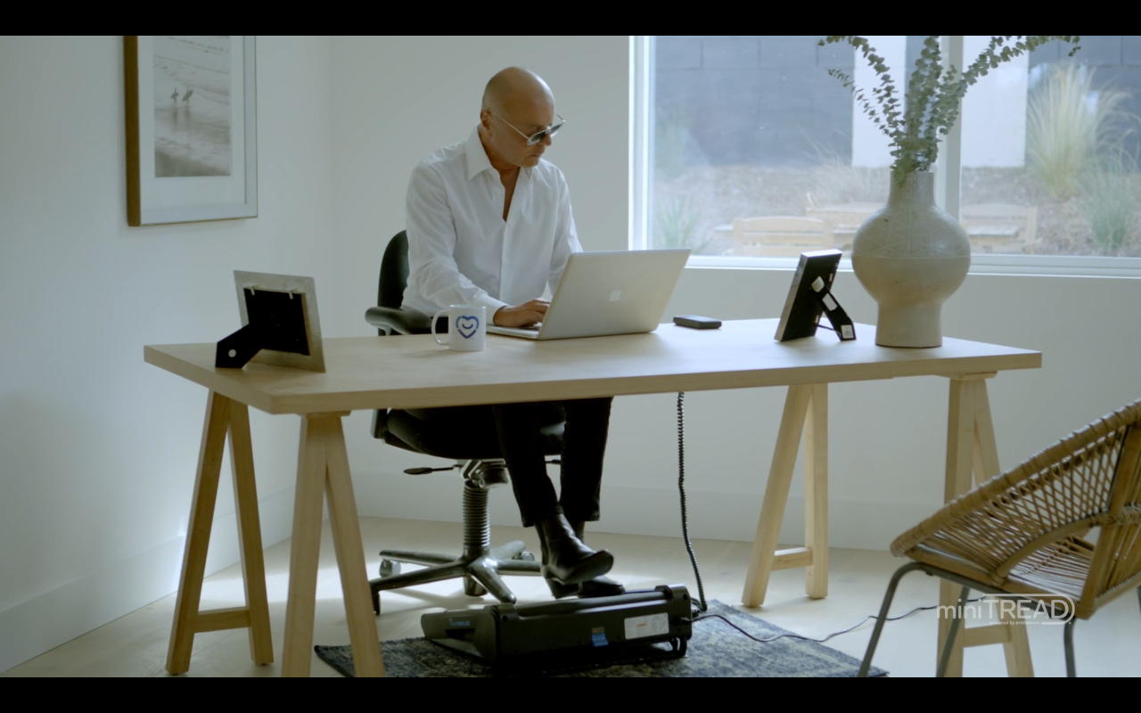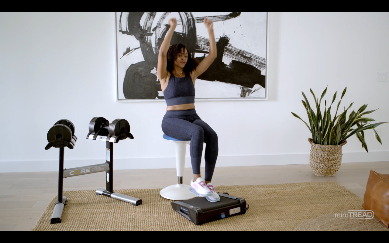 turns chairs into gyms. A patented compact treadmill style device used at your desk, couch or anywhere you are seated.