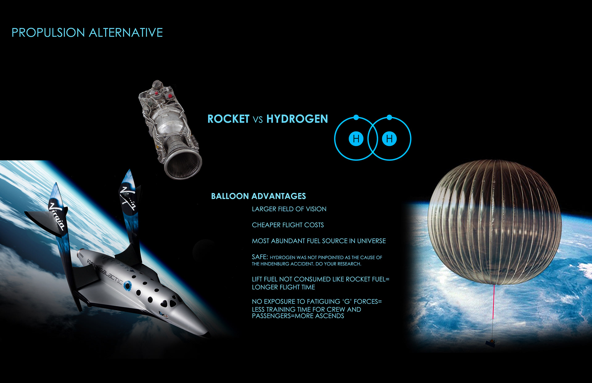 With the counsel of two JPL engineers to maintain feasibility, this concept was developed as an alternative to the rocket ‘shot-n-drop' experience. This stratosphere skimming balloon provides space tourism for a larger demographic, at a more environment-fitting pace.